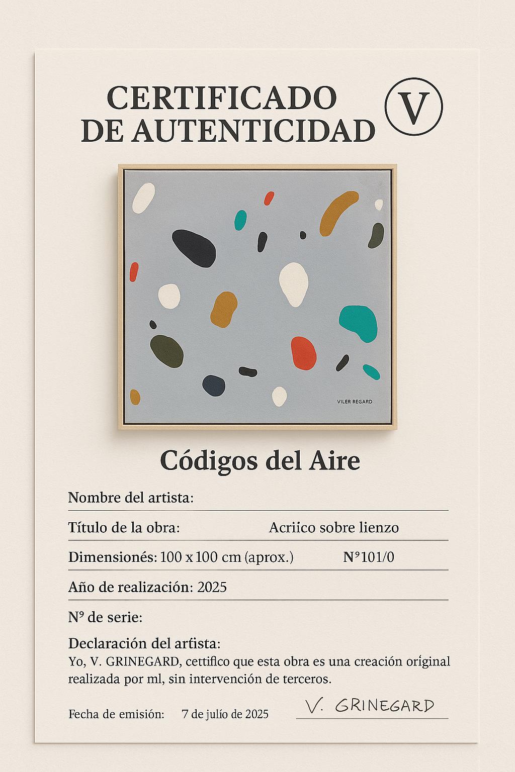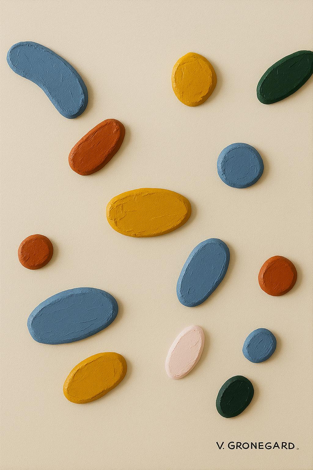 A subtle and contemporary composition where shapes float in a suspended atmosphere, evoking fragments of memory and particles of emotion. Each brushstroke, each mass of color has been applied by hand with precision and calm, creating an almost ethereal visual balance.