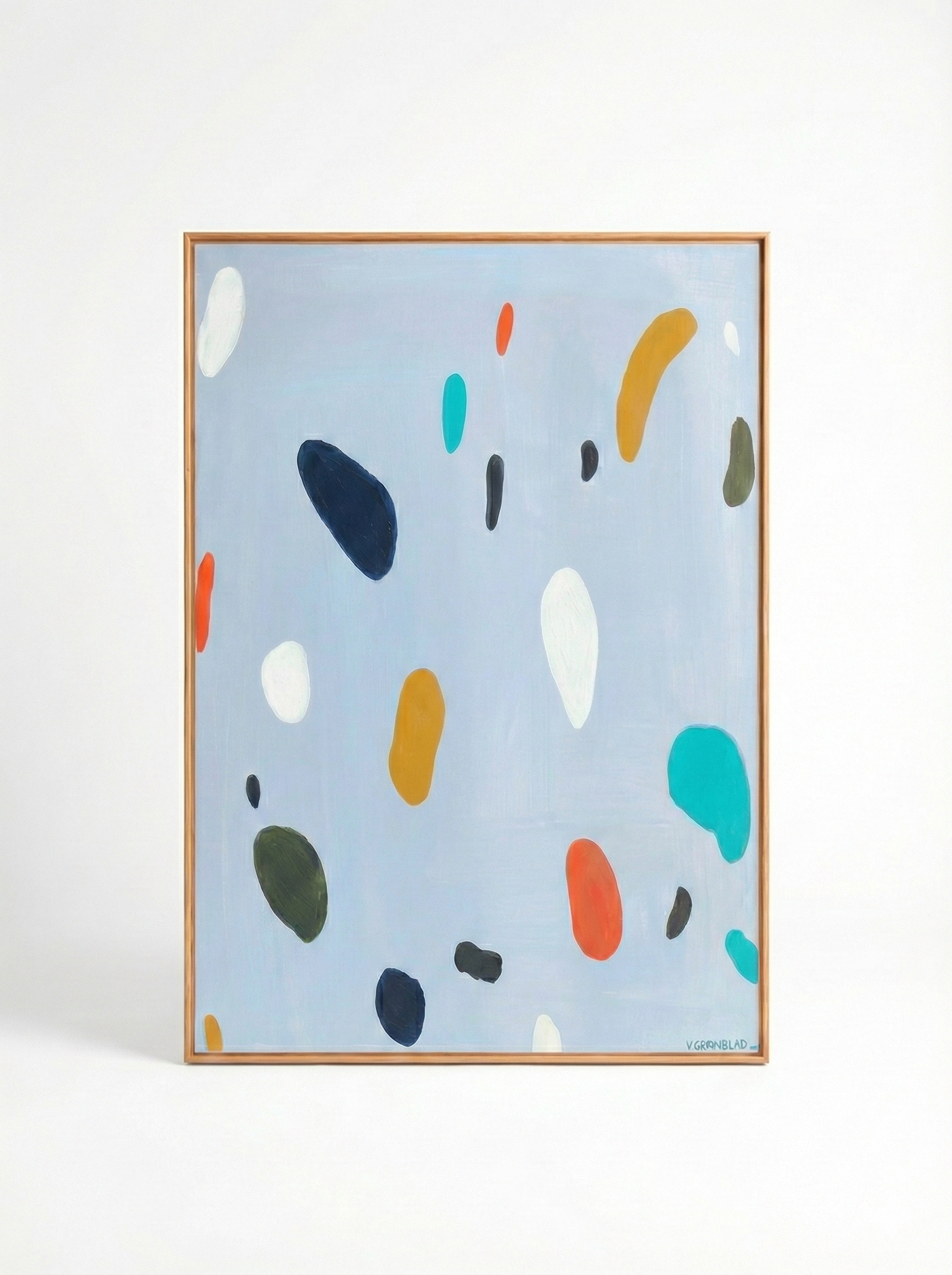 A subtle and contemporary composition where shapes float in a suspended atmosphere, evoking fragments of memory and particles of emotion. Each brushstroke, each mass of color has been applied by hand with precision and calm, creating an almost ethereal visual balance.